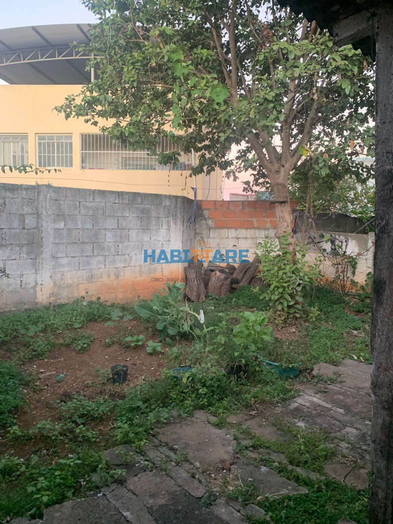 Salão, um quarto, cozinha, banheiro e quintal.