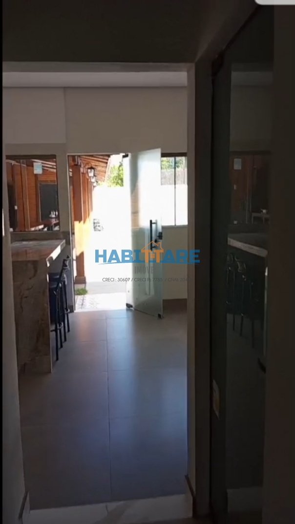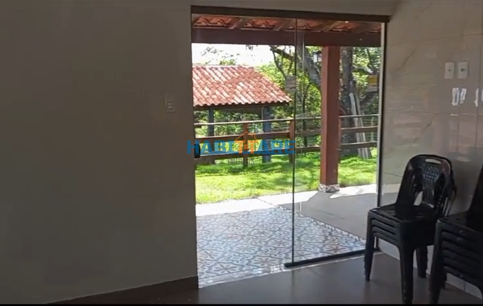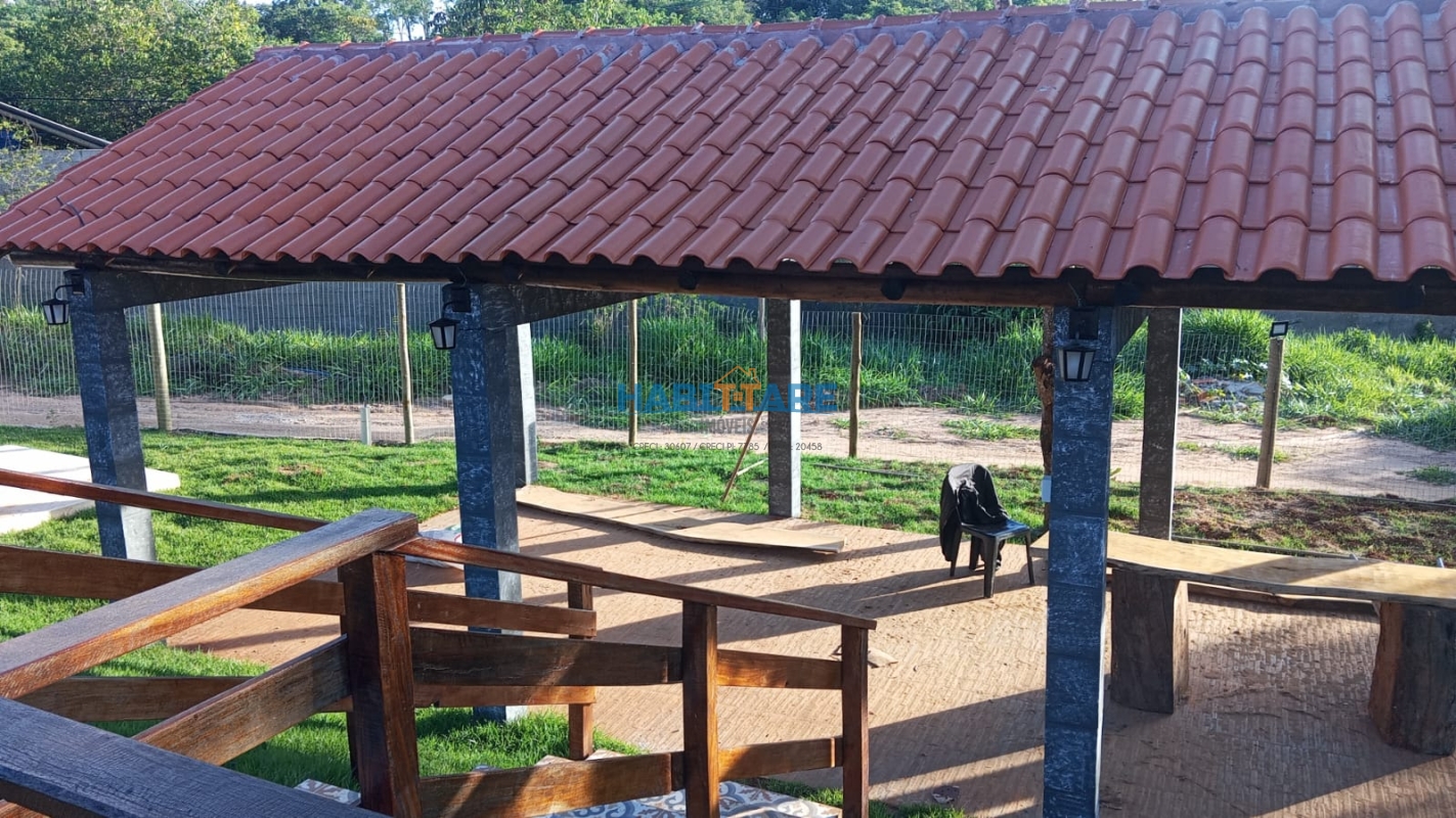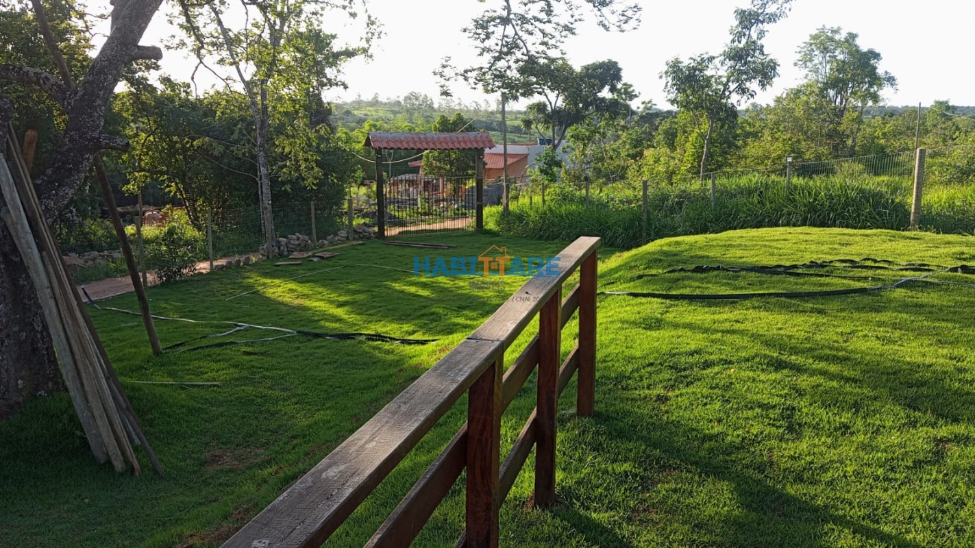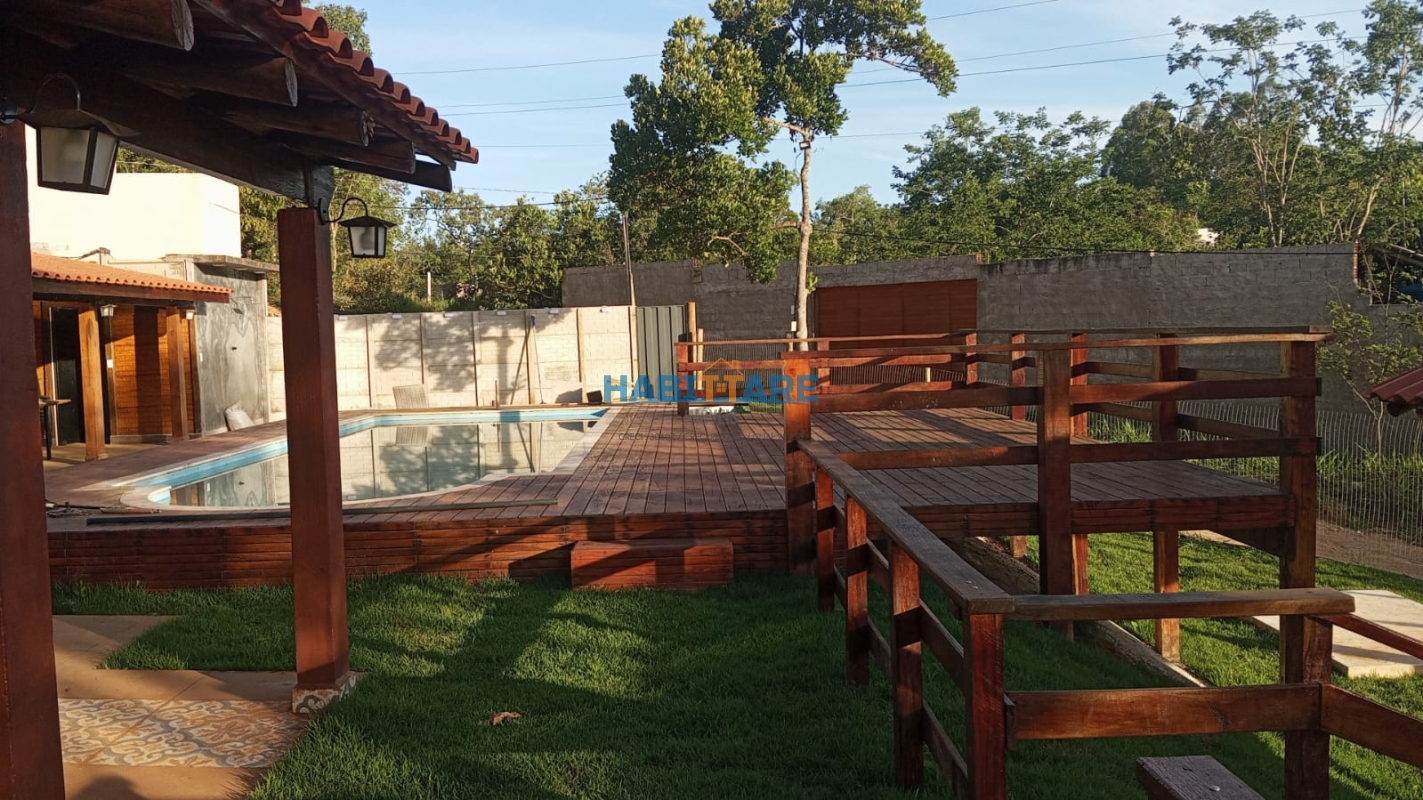 Casa com três quartos Sala conjugada com cozinha Banheiro social Área gourmet com fogão cooktop, fogão à lenha, churrasqueira, forno e banheiro Piscina de 60.000 litros, sauna, aquecedor, cascata e deck de madeira. Poço semi artesiano